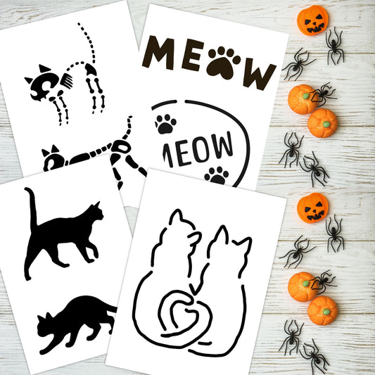 Cat Pumpkin Carving Stencil Set Halloween Jack-o-lantern (PDF Pattern)