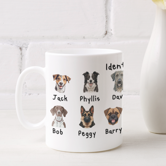 Funny Dog Lover Mug Identifying Dogs Coffee Cup Cute Dog Faces with Names Gift for Dog Mum or Dad Pet Lover Coffee Mug