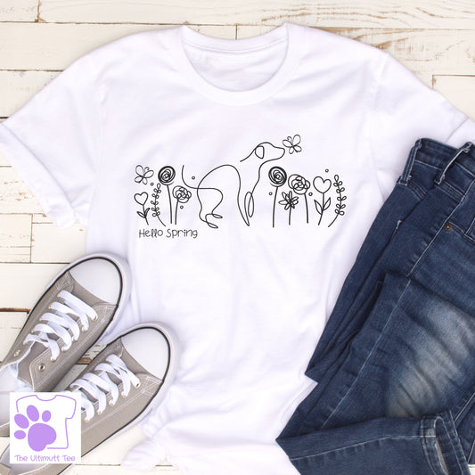 Flower Pattern Tshirt Spring Flowers T Shirt Line Art Dog Lover Vegan T-shirt