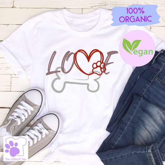 Love Dogs Paw Heart Bone Dog Lover Slogan Vegan T-shirt