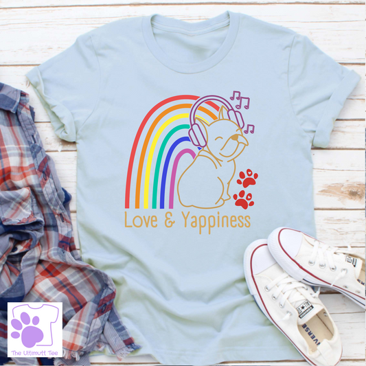 Love And Yappiness Rainbow Puppy Pride Dog Lover Vegan T-shirt