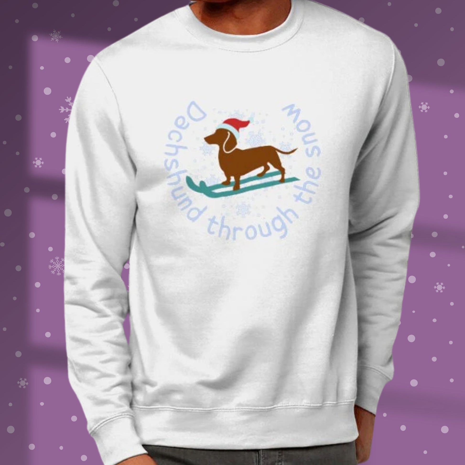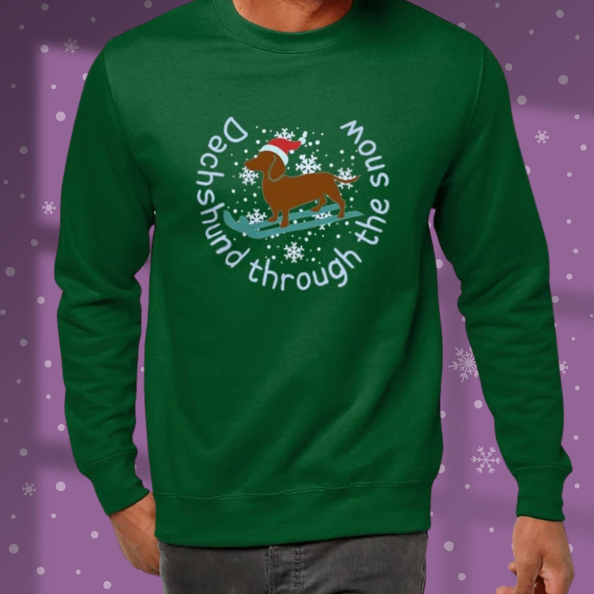 A cute little Dachshund dashing through the snow, makes the perfect Christmas present for any dog lover. Get in the Christmas spirit with a festive design t-shirt and make it a day to remember.