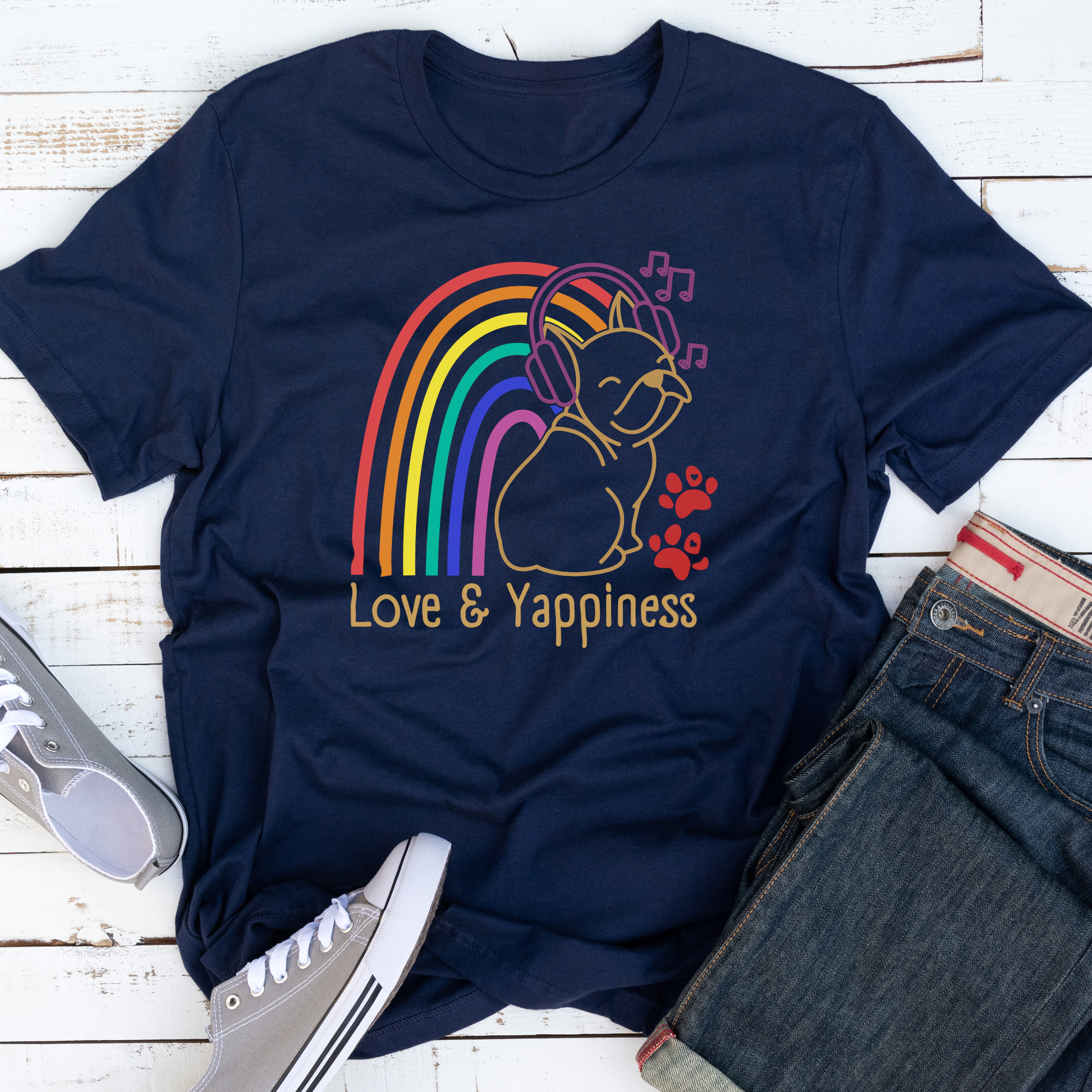Love And Yappiness Rainbow Puppy Pride Dog Lover Vegan T-shirt