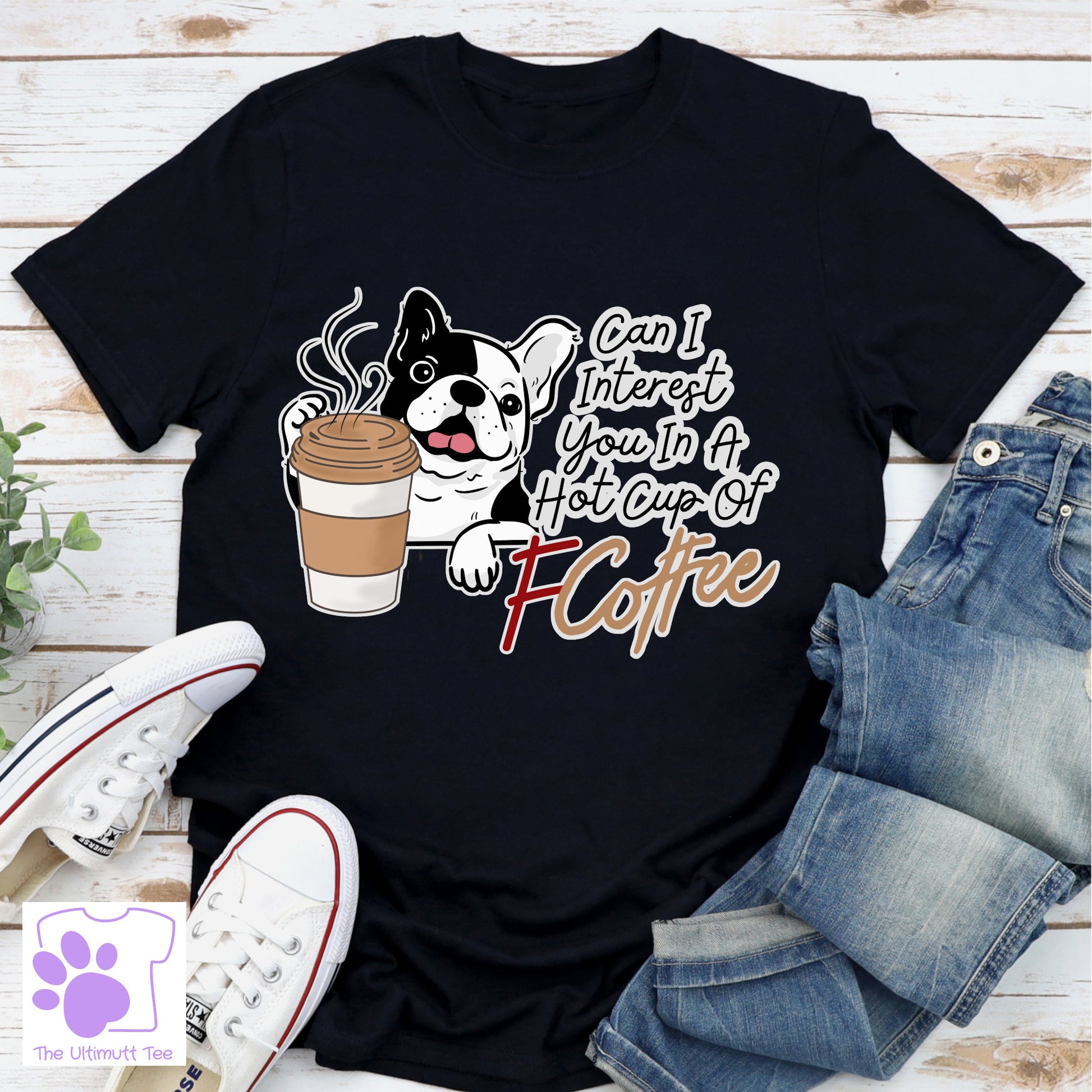Bulldog coffee cup with F'Coffee swear funny slogan. An ideal gift for dog owners who love coffee or for that someone with a sense of humour. A great dog lover gift for bulldog lovers.