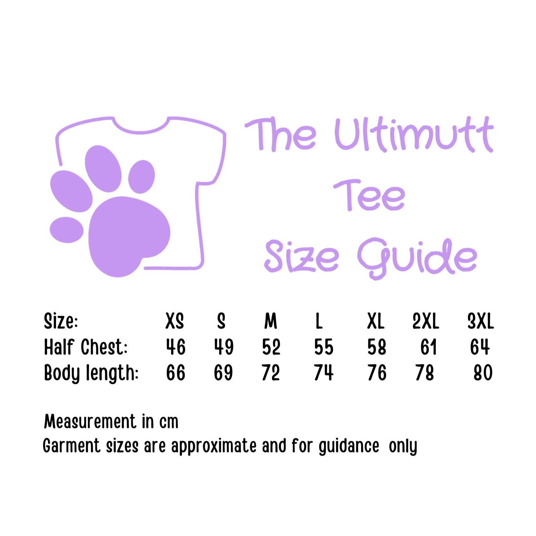 Garment sizes are approximate and for guidance only.