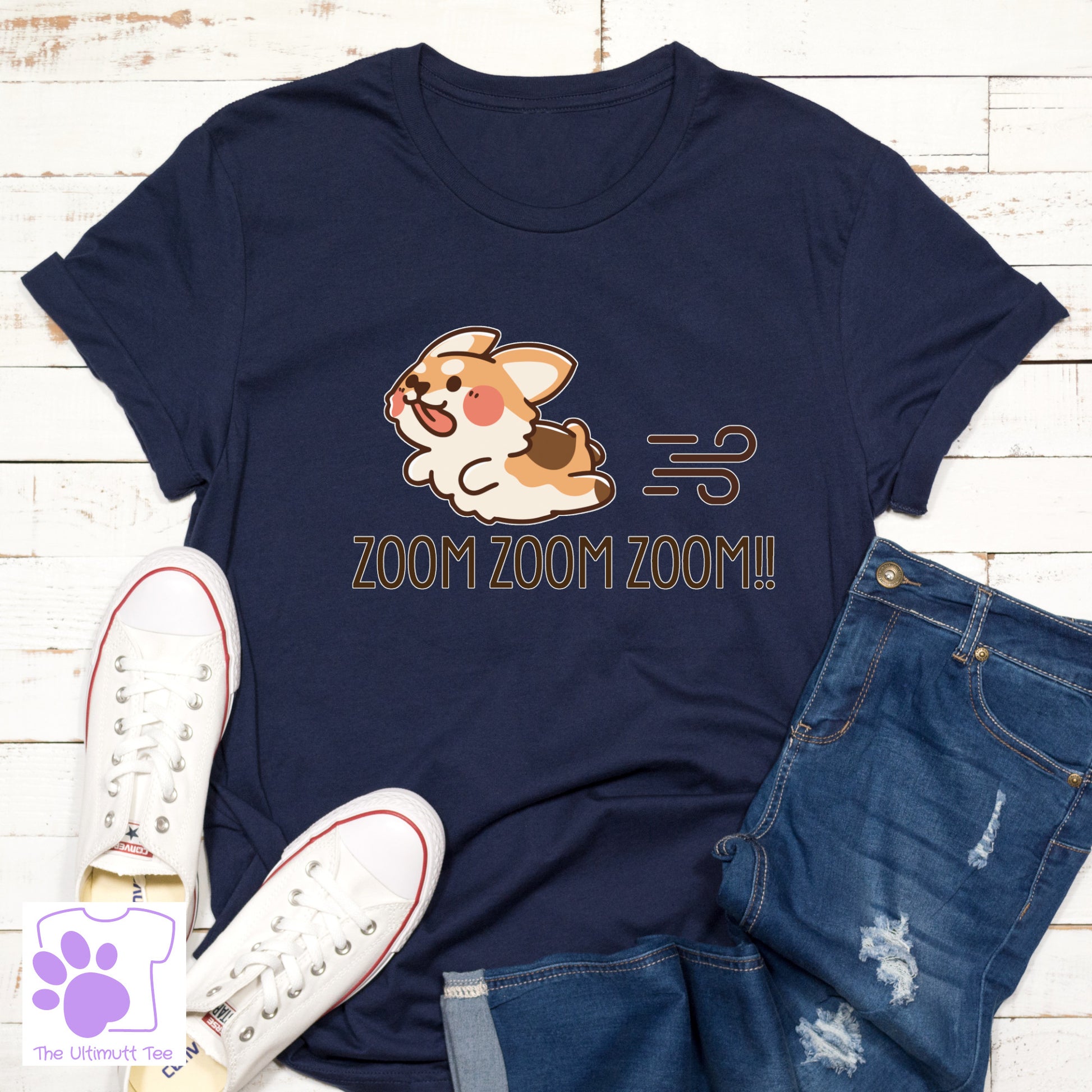 A cute cartoon puppy dog with zoom zoom zoom slogan. Make your dog happy with a zoomies design. The perfect dog lover gift.